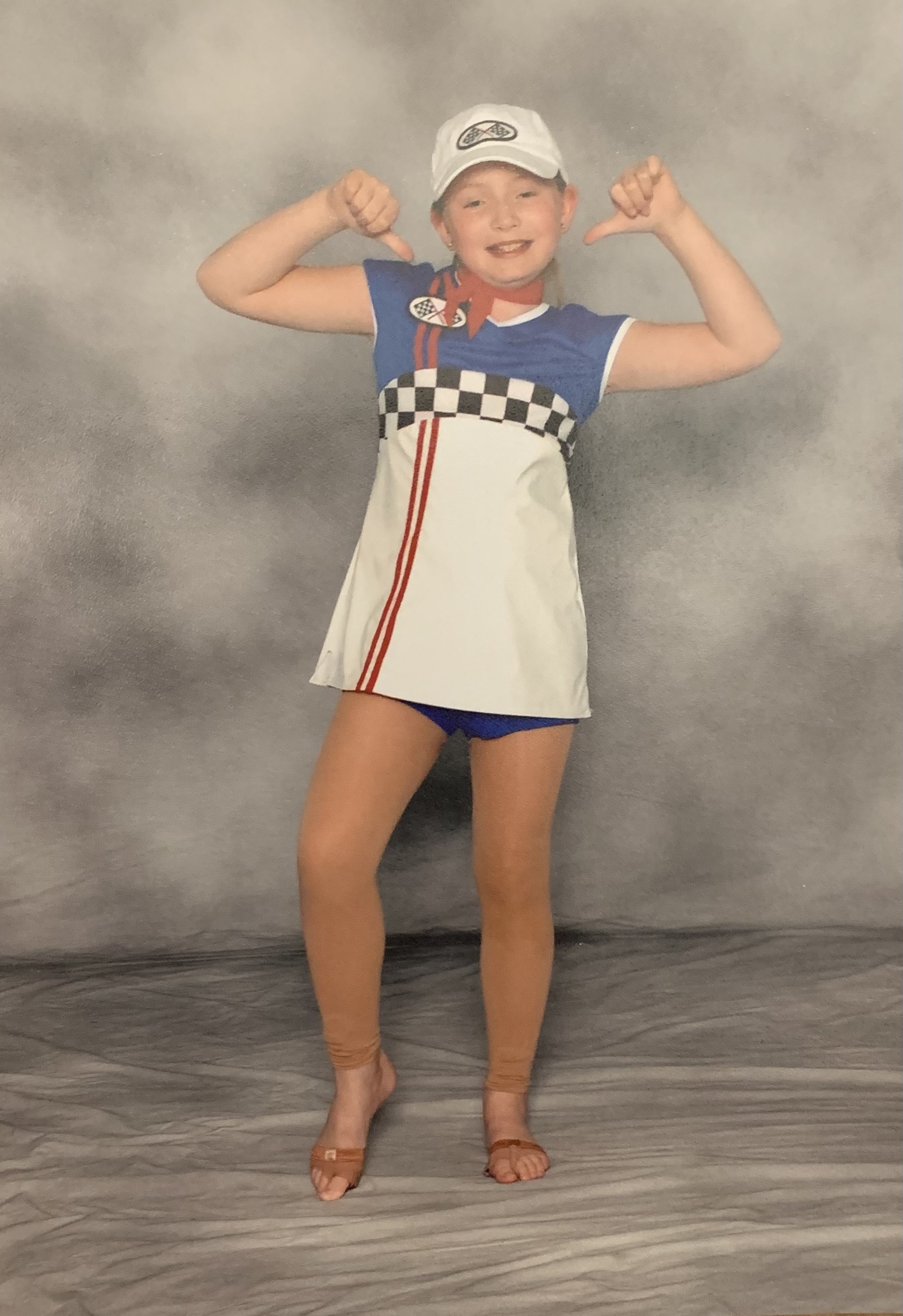 When I joined the studios’ competition team, my confidence dropped almost immediately. It seemed like everyone was leaps and bounds ahead of me and it felt impossible to keep up. I remember wanting to do acrobatics but I could only do a cartwheel. The teacher told me I had to learn how to do a back walkover if I wanted to do acro. I thought that was dumb because I assumed the whole point of the class was to help me learn how to do these seemingly impossible tricks. I stuck to it though, backbending and rocking back and forth trying to kick my legs over, and falling to the floor, over, and over again. That is until one day, at the height of my frustration, I actually kicked my legs over and stood up. I was finally able to walk into dance class and say to my teacher “I have my back walkover!” That made me realize if I want to be good at something, I’m going to have to want it. I’m going to have to drill myself until I’m happy with it, and I pushed myself for the next couple years of competitive dancing.