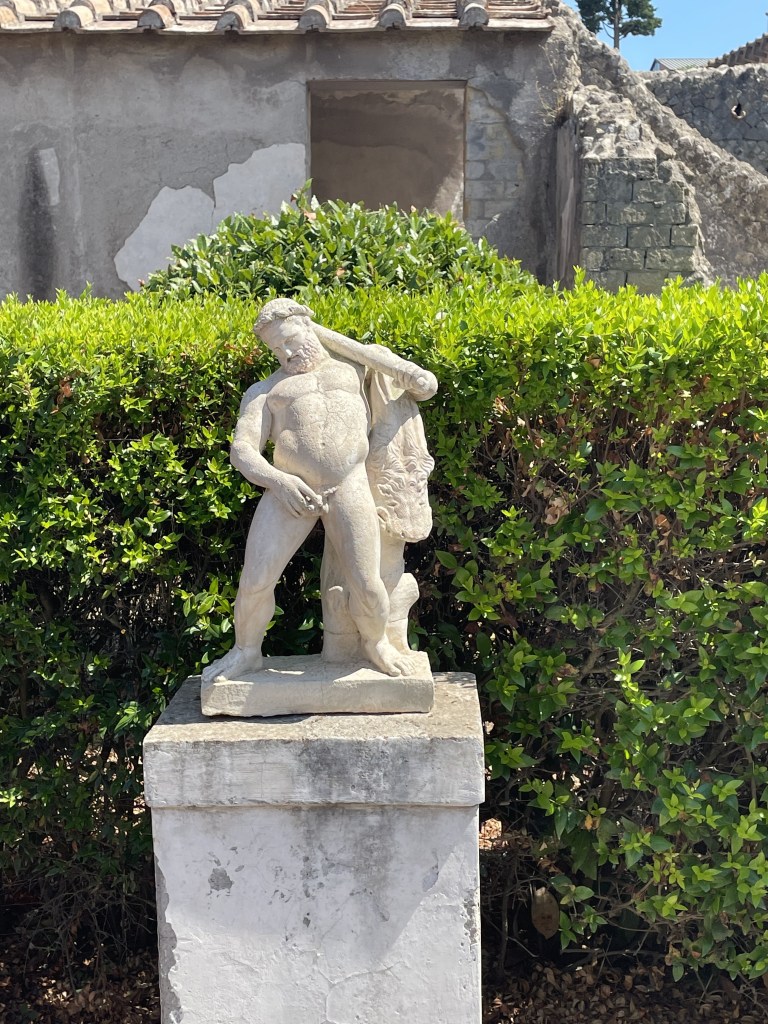 Herculaneum was actually connected to the legend of Hercules, a story about a demigod who had to complete trials during his time on Earth to achieve immortality. It’s been said that he saw this plot of land between Vesuvius and the sea and wanted to build a city there. The statues and artwork of Hercules, along with the city’s name, suggests the city had some Greek origins. It is known the people of ancient Herculaneum were Pagan and worshiped many gods, but some of the most notable artwork references Hercules. He’s always seen holding a club and has a bear skin draped over his shoulder.