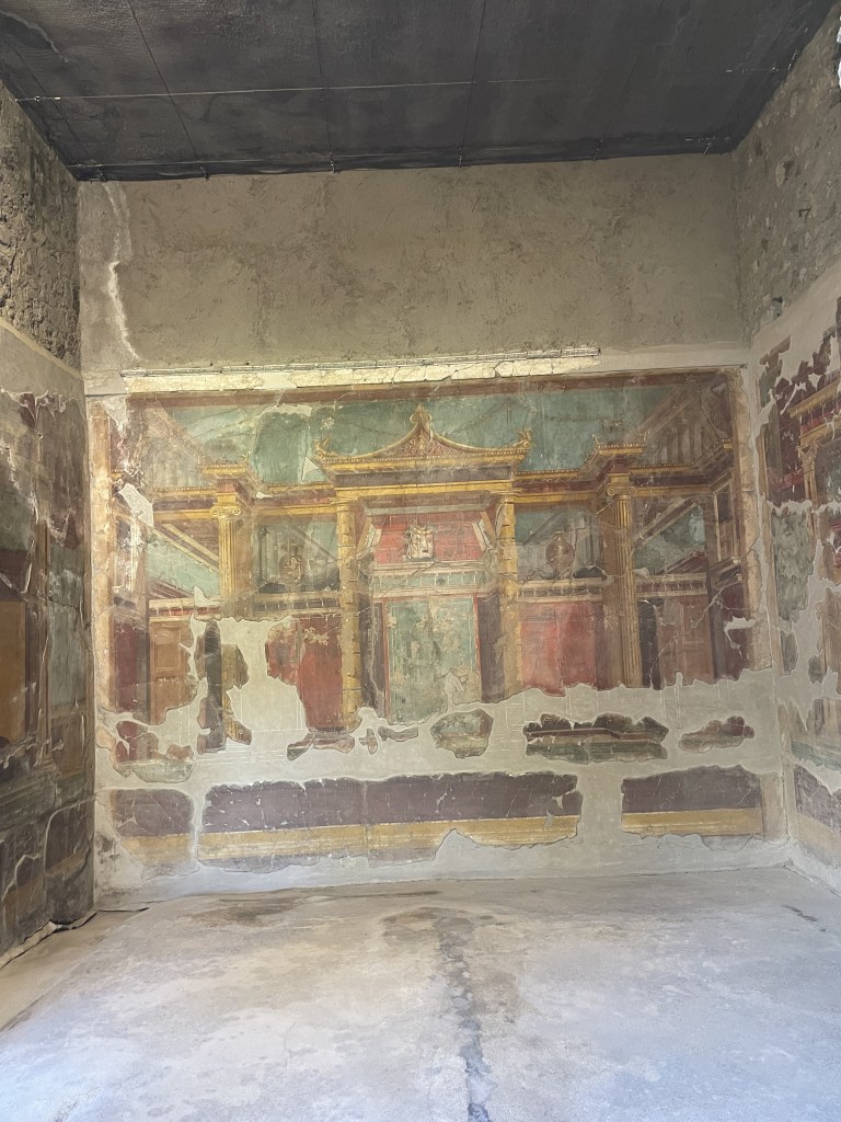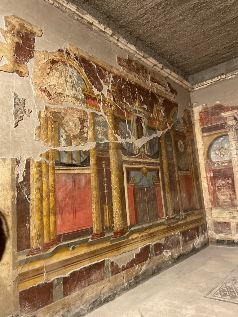Although all three of these sites were sealed by the same eruption, they were effected differently because of the different elements they were exposed to. Since Pompeii was hit with the ash cloud, ceilings of the buildings collapsed. However with Herculaneum, a lot of roofs are intact. There’s even wood in the support beams that still stand, they’re just black from the heat. The same goes for Opolantis, many of the ceilings of rooms are standing today. Basically Pompeii was destroyed from atmosphere down, and Herculaneum and Opolantis were destroyed from the ground up.