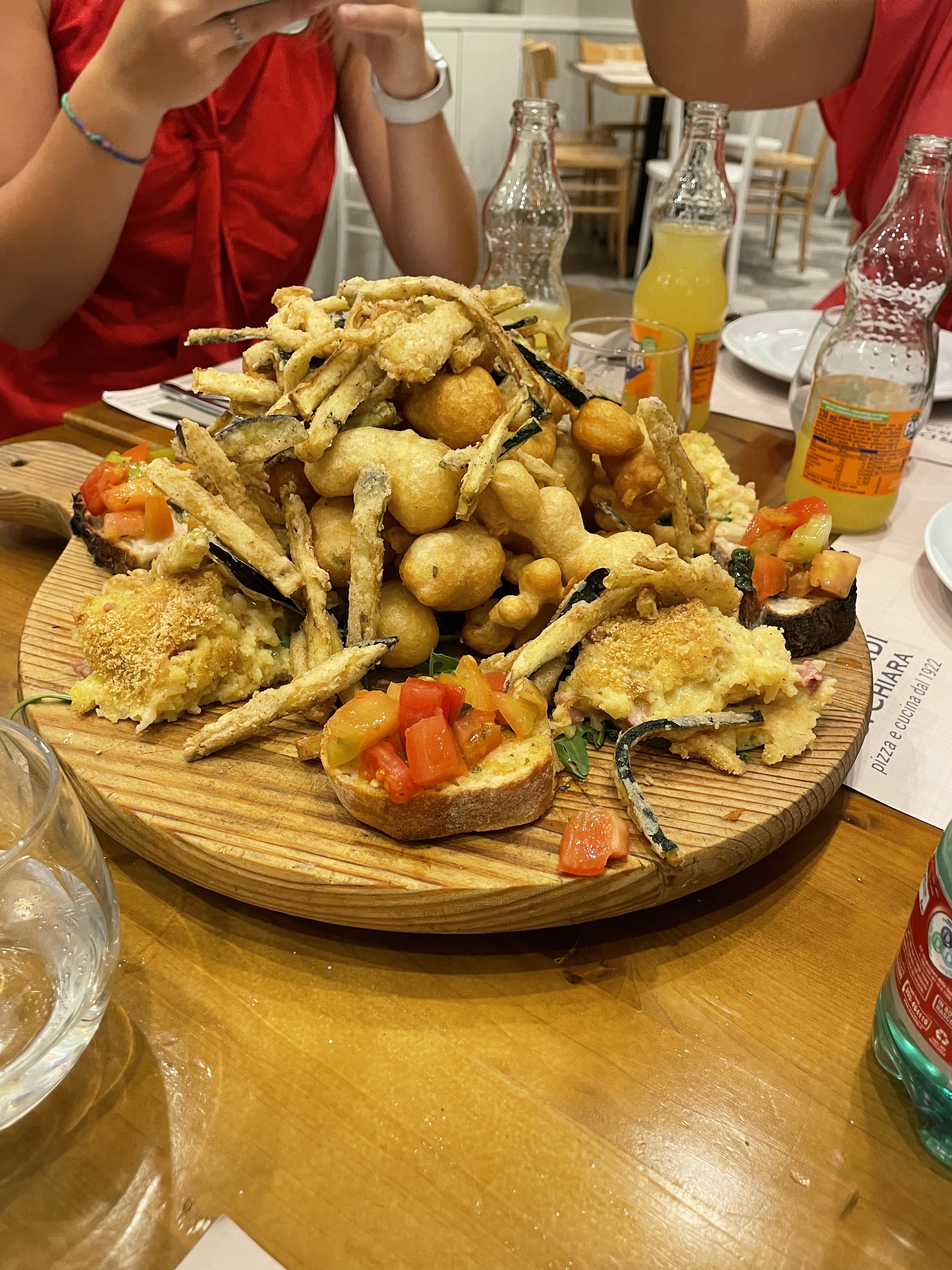 As a student traveling to Italy from the US, I definitely tasted and felt the difference in the food. I left meals not feeling heavy despite eating three to four courses. Grocery shopping was also a pleasant experience because produce was fresh, and therefore cheaper than the US. I could cook fresh meals for myself but since I was so excited to eat what I made, I couldn’t even stop to take a picture before eating. Many meals out made the no-picture club as well, but the meals pictured were unlike anything I could find in the states.